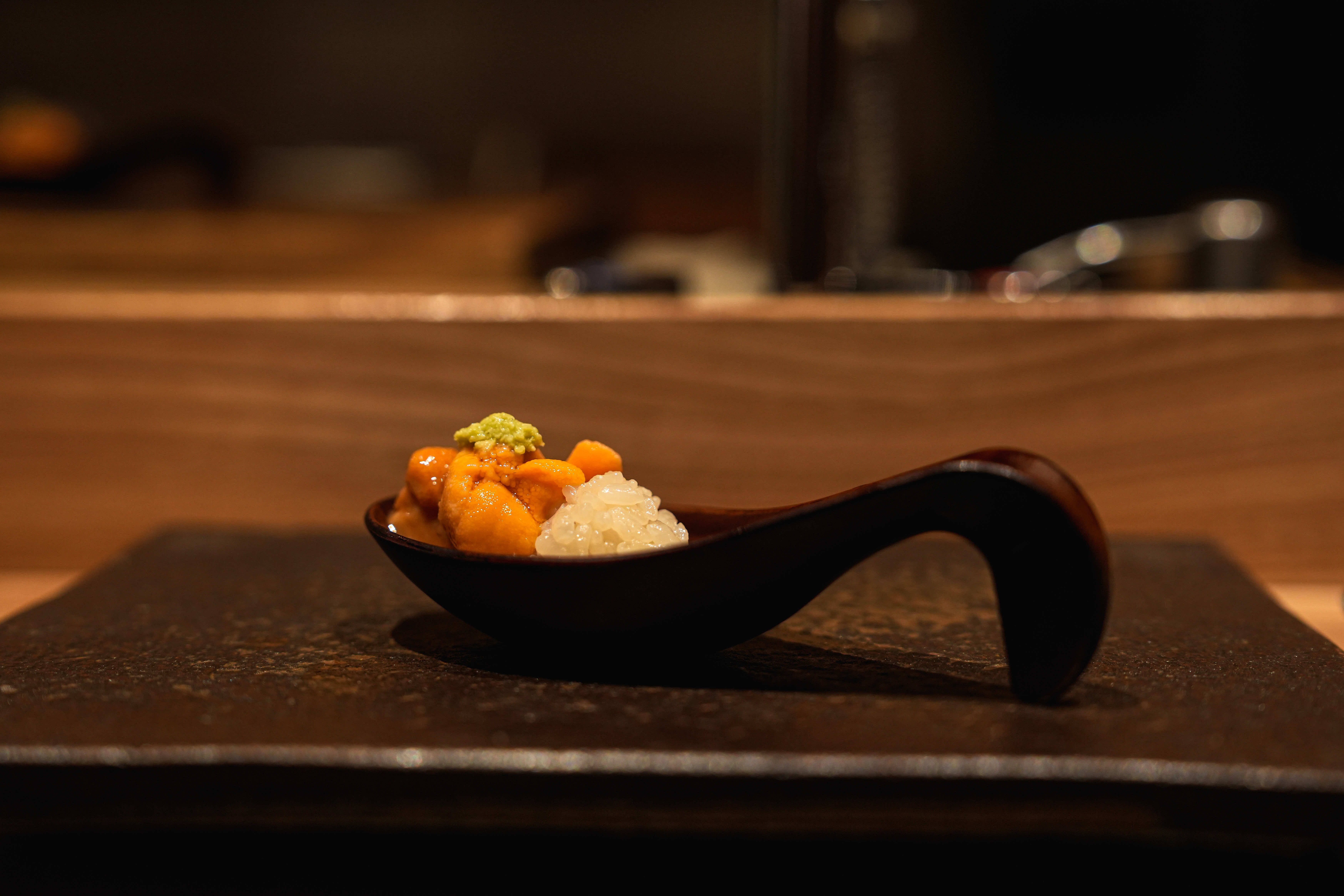 海胆一直是我俩的最爱,那晚吃到的两道海胆寿司都非常出色。第一道搭配了Hokkaido scallop (北海道扇贝),扇贝的口感和海胆的鲜味完美结合;第二道结合了来自不同地区的两种海胆,两种海胆的味道和口感略有差异又相得益彰,对于喜欢吃海胆的我来说这道是极致的享受。