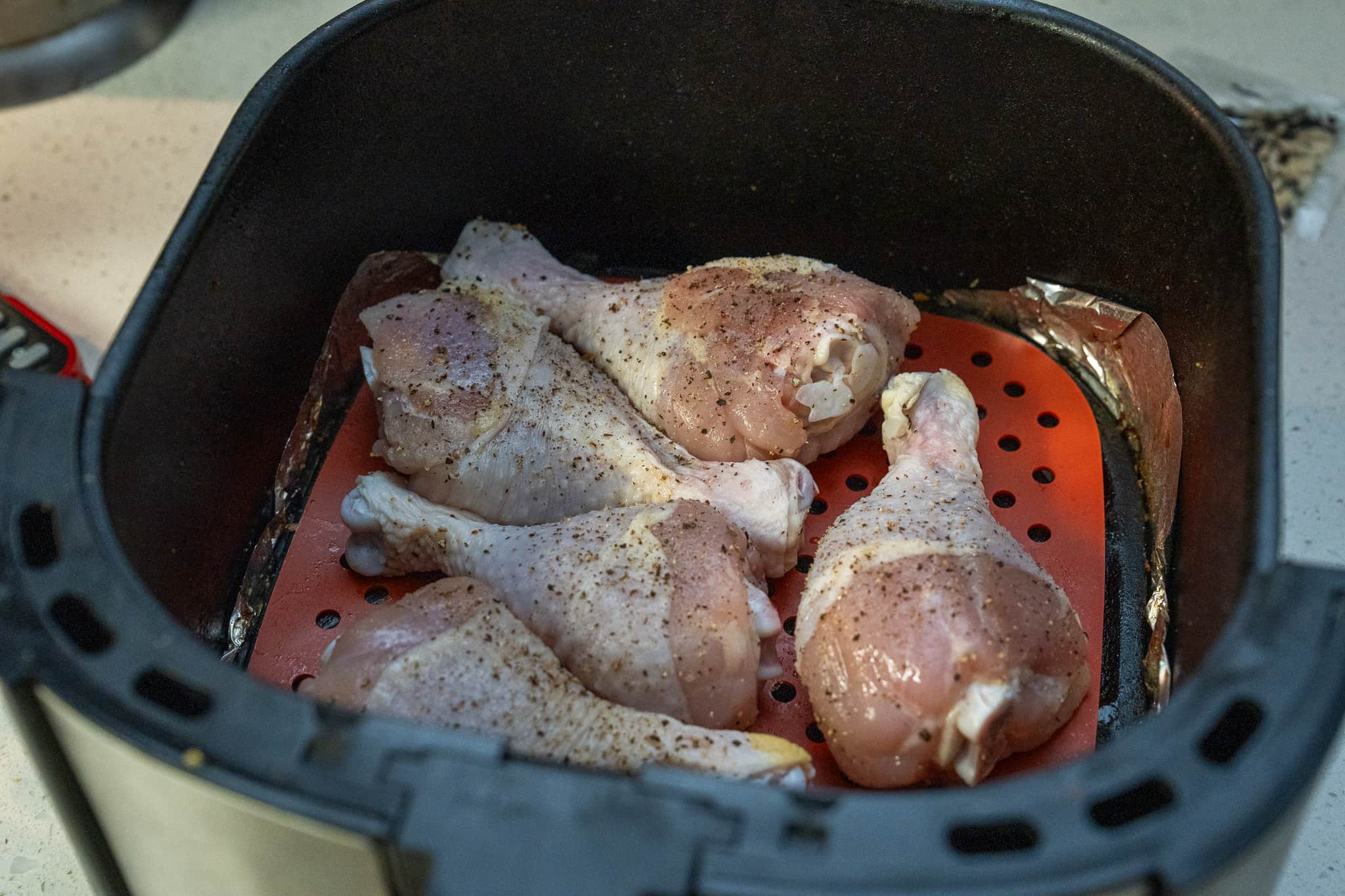 烤鸡腿做起来更方便,一是可以进空气炸锅,二是吃着方便,很适合当工作日快手晚餐。我通常跳过放入冰箱冷藏风干这一步。
