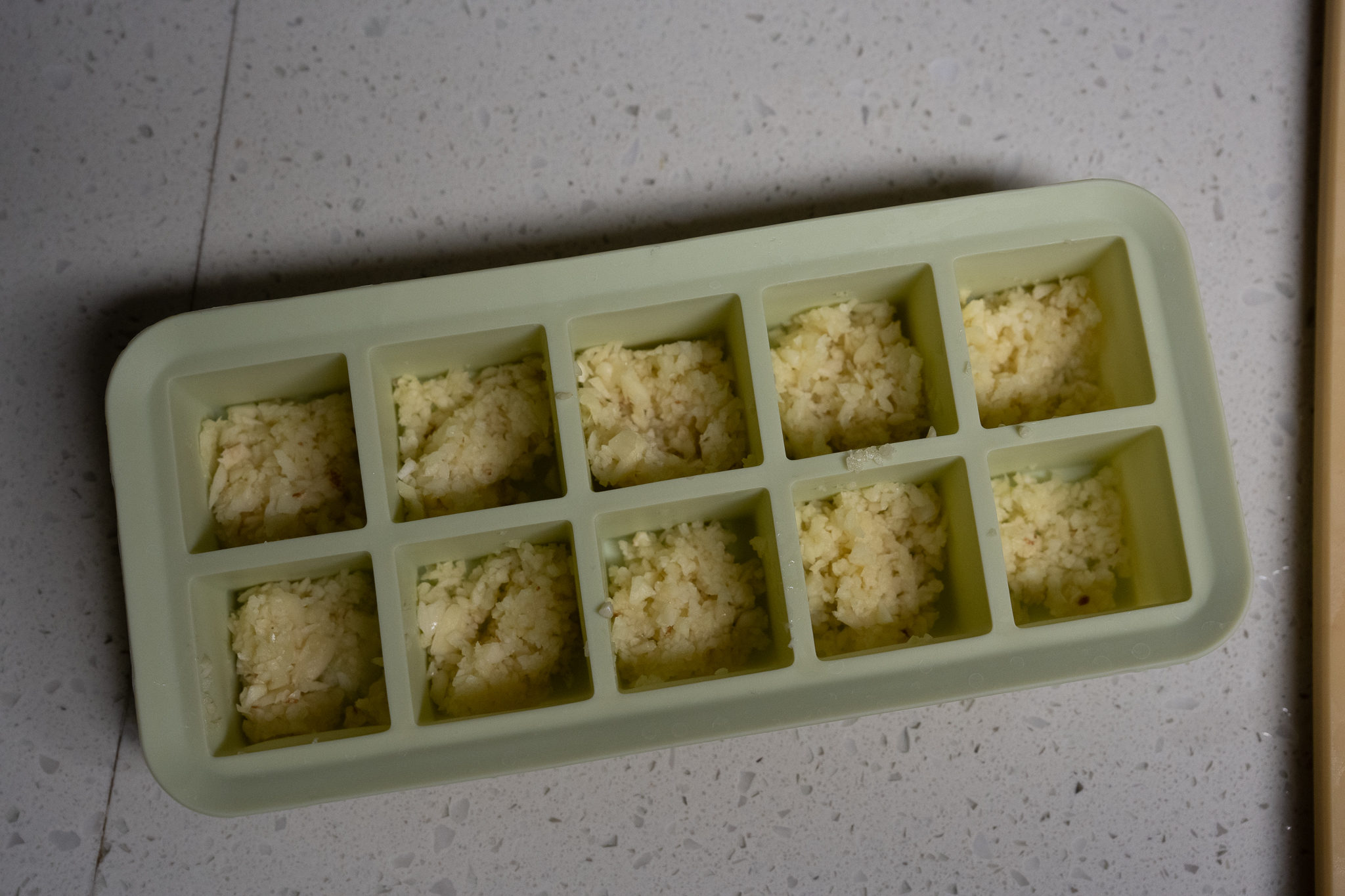 - 去年开始我都偷懒买剥好的蒜头,但一袋买回来很容易坏。我就会用这个东西把蒜头打成末(我没有专门压蒜蓉的器具),然后分装在冰格里冻起来,炒菜时候直接拿一块出来用就行