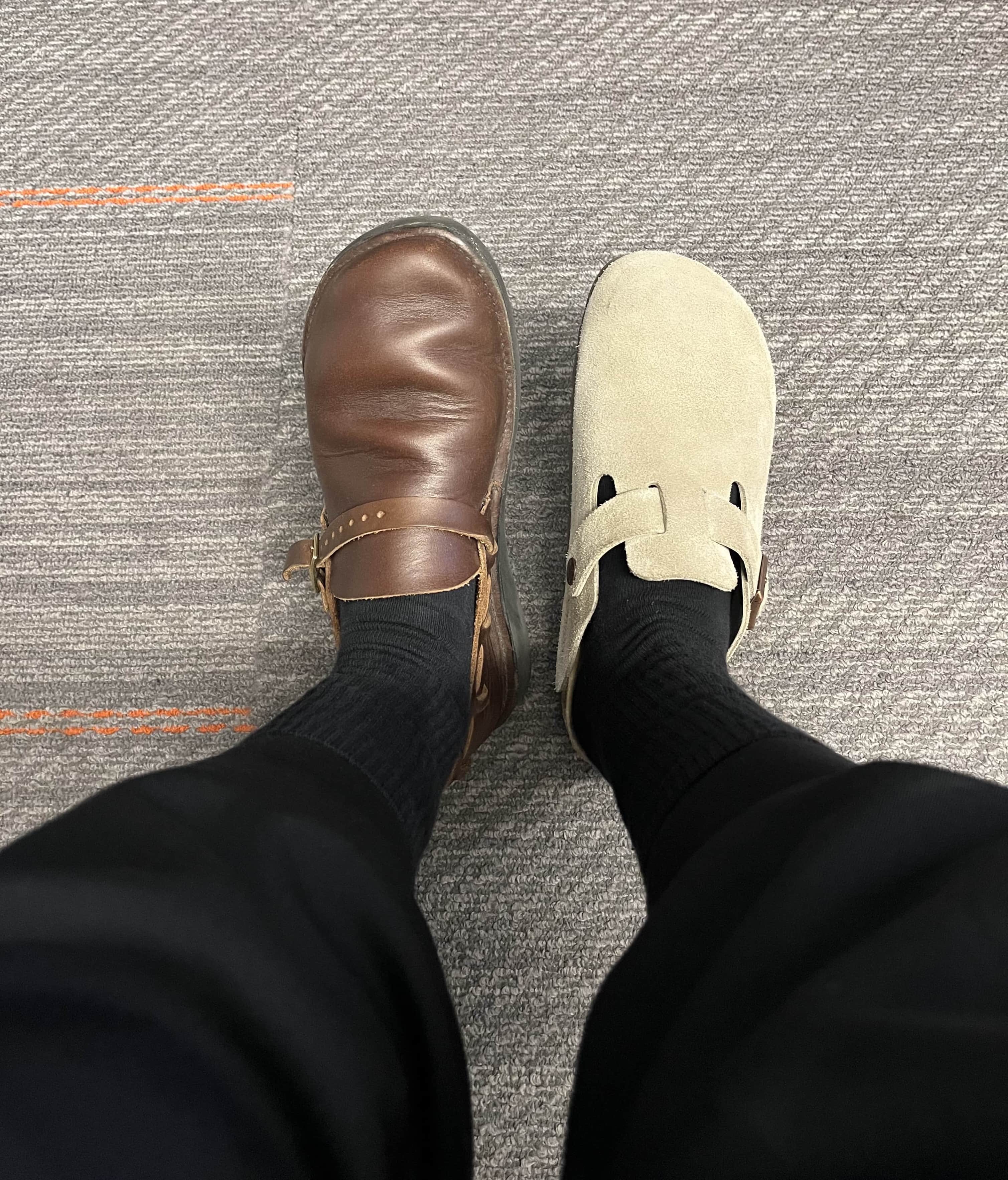 我一坐下办公就想脱鞋,我总是选易穿脱的鞋上班。还不管啥鞋强行踩跟,之前一双匡威被我把脚跟处的支撑结构都踩断了 😑。去年突然想到,我干嘛不在公司放双穆勒鞋呢?作为传统行业,在办公室直接穿拖鞋太过分了,穆勒鞋就显得正经一些。在TRR浏览了一些女士穆勒鞋之后,我想到了博肯鞋的 Boston,宽宽的,看着就很舒服。